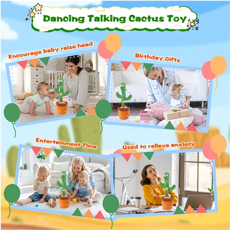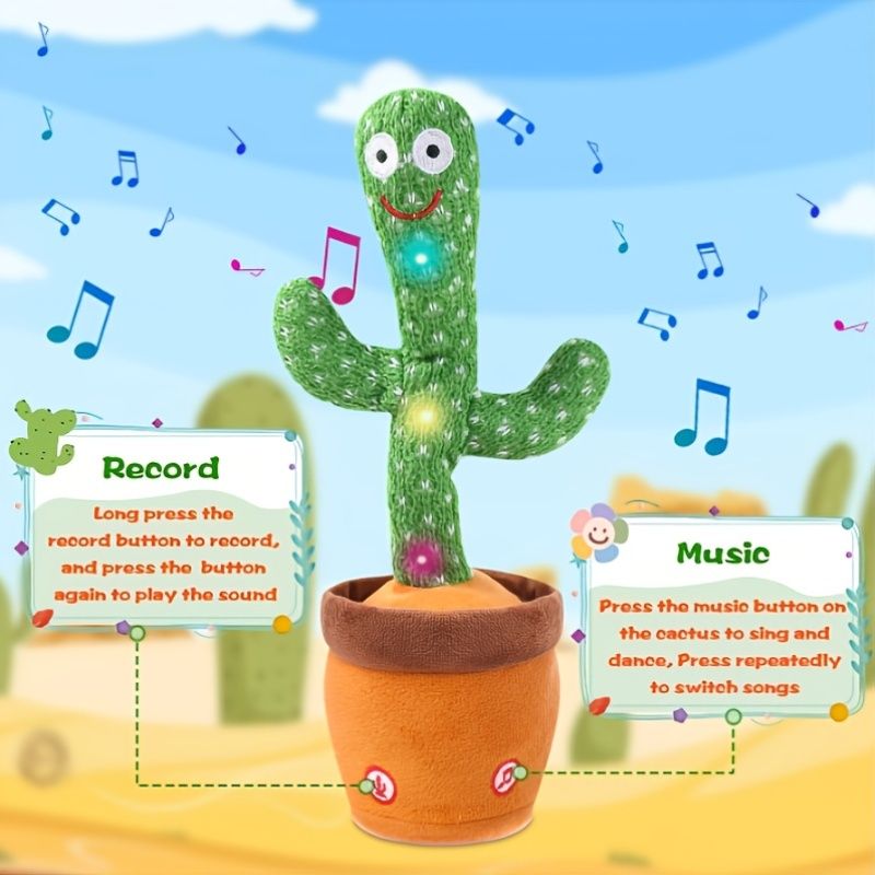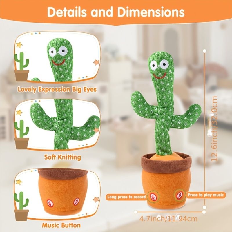 A Funny Cactus Twist Toy That Can Talk, Sing, And Light Up. It Repeats What You Say And Serves As a Decorative Piece for Home Rooms. Perfect As a Gift for Valentine'S Day, Halloween, Christmas, Easter, Birthdays, Or New Year (Batteries Not Included)