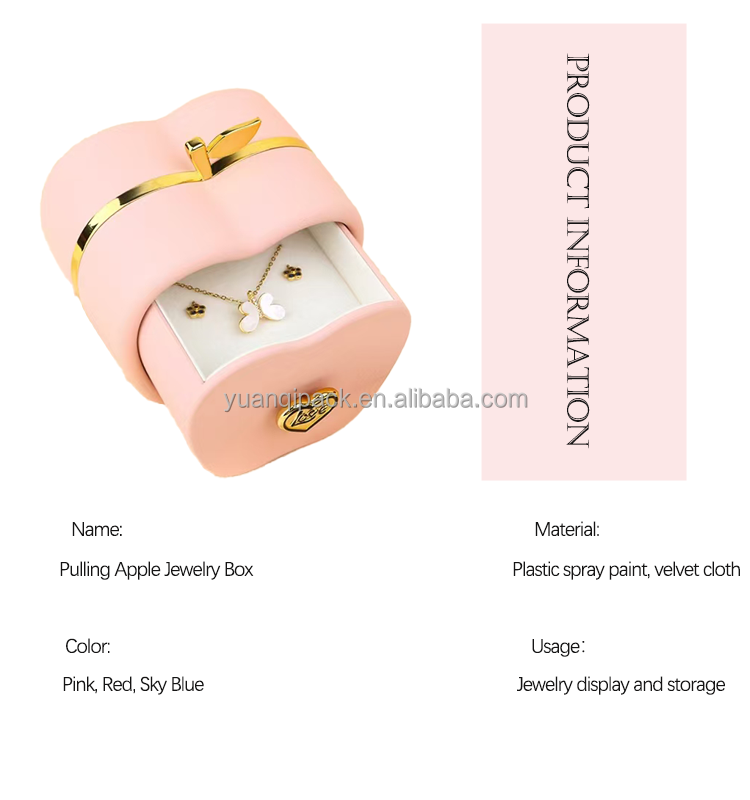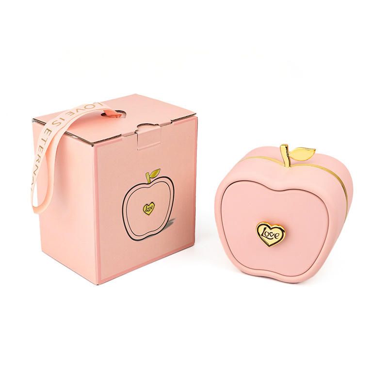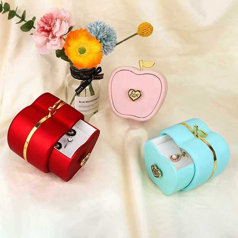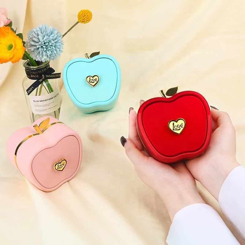 New Creative Fashionable Velvet Apple Shaped Button Drawer Jewelry Packaging Gift Box