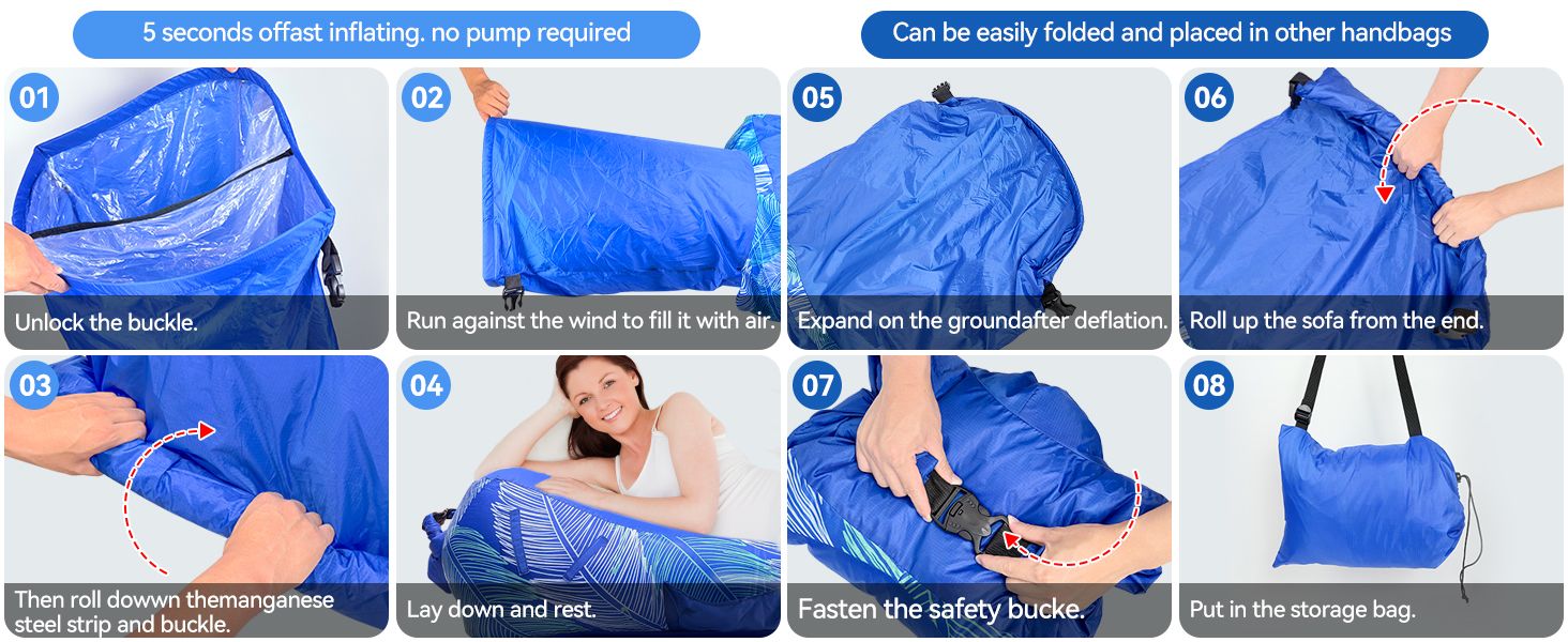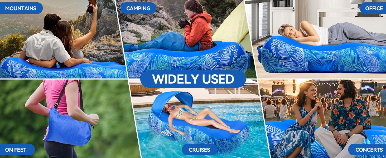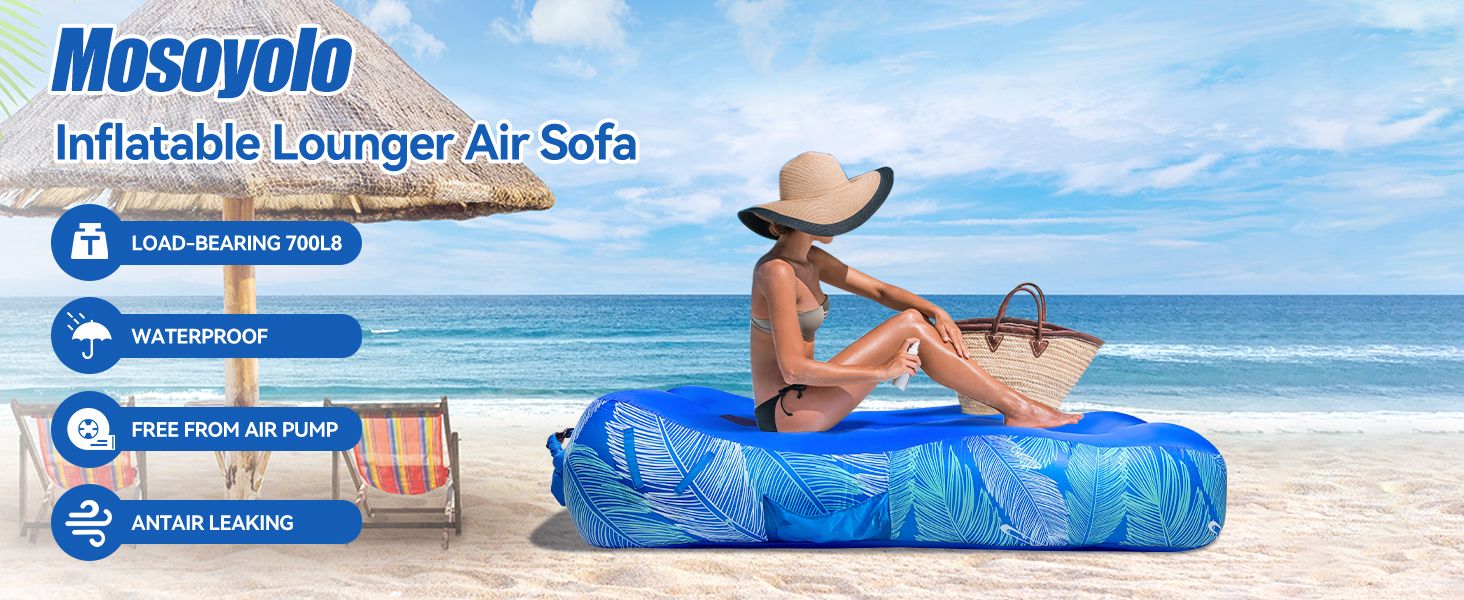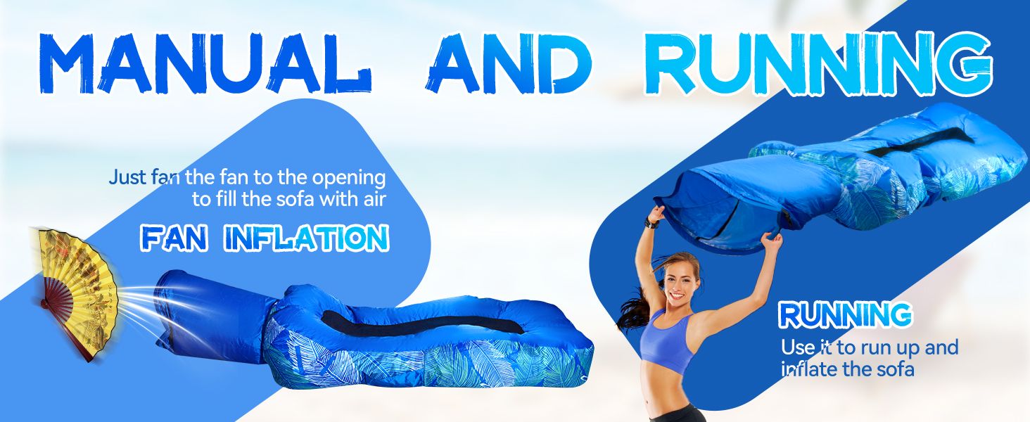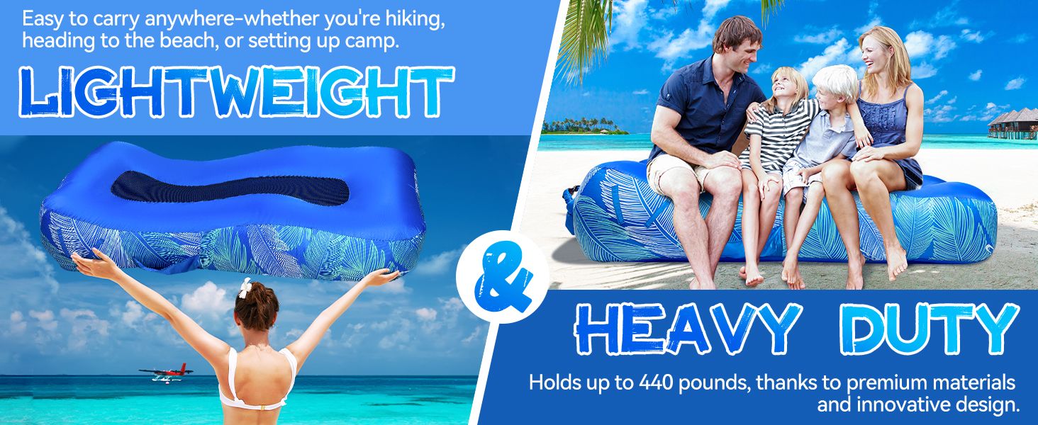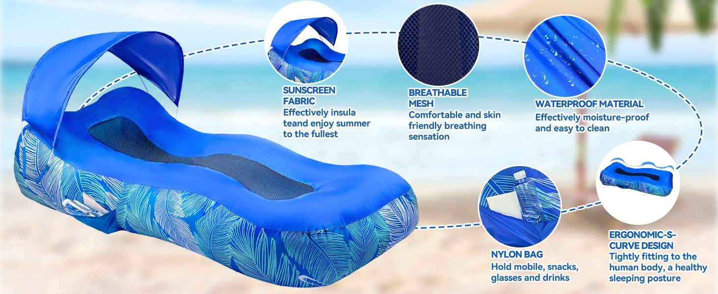 Inflatable Lounger Air Sofa with Sun Shade Cover Waterproof Inflatable Couch Chair for Camping Beach Hiking Backyard, Easy to Set Up Inflatable Couch (Blue)