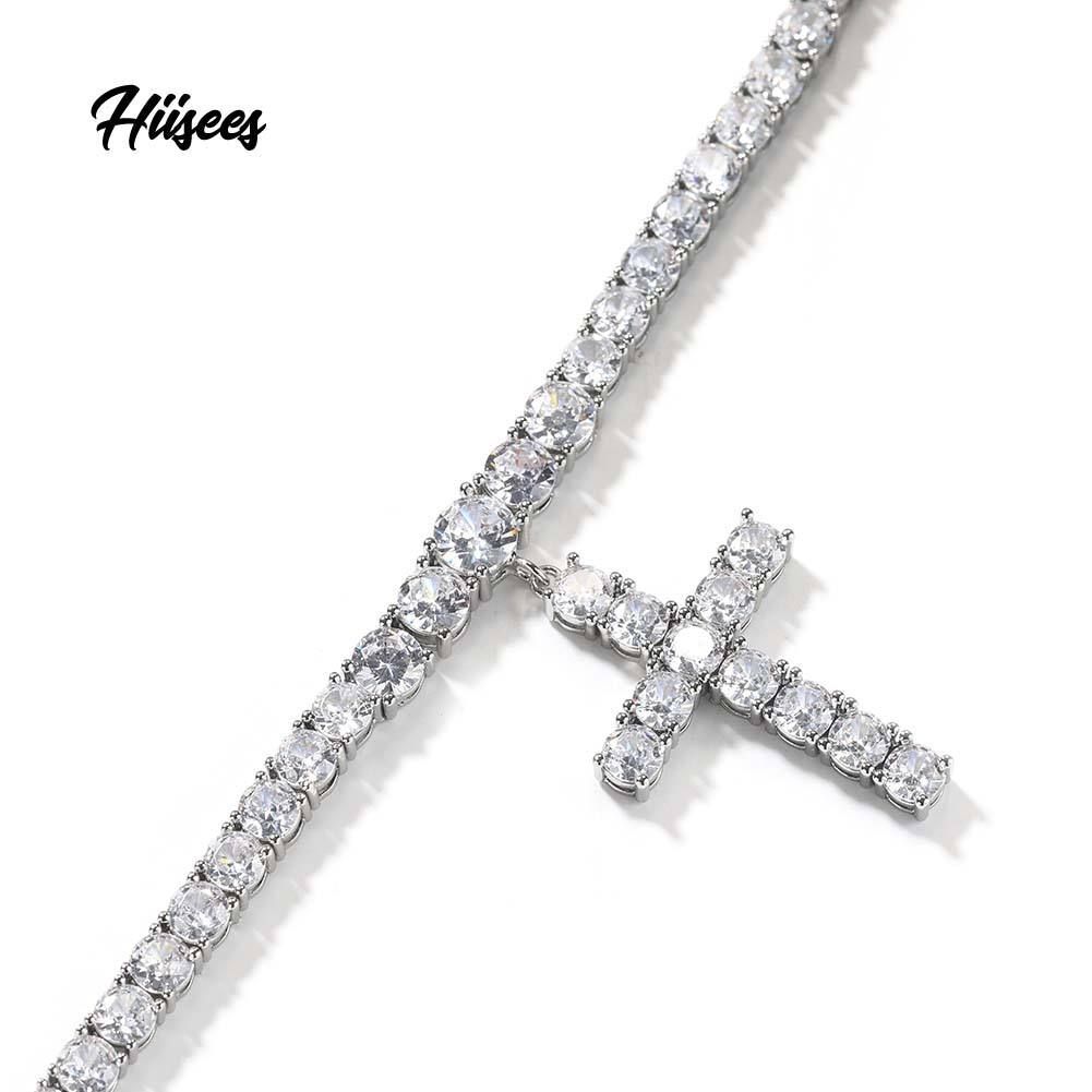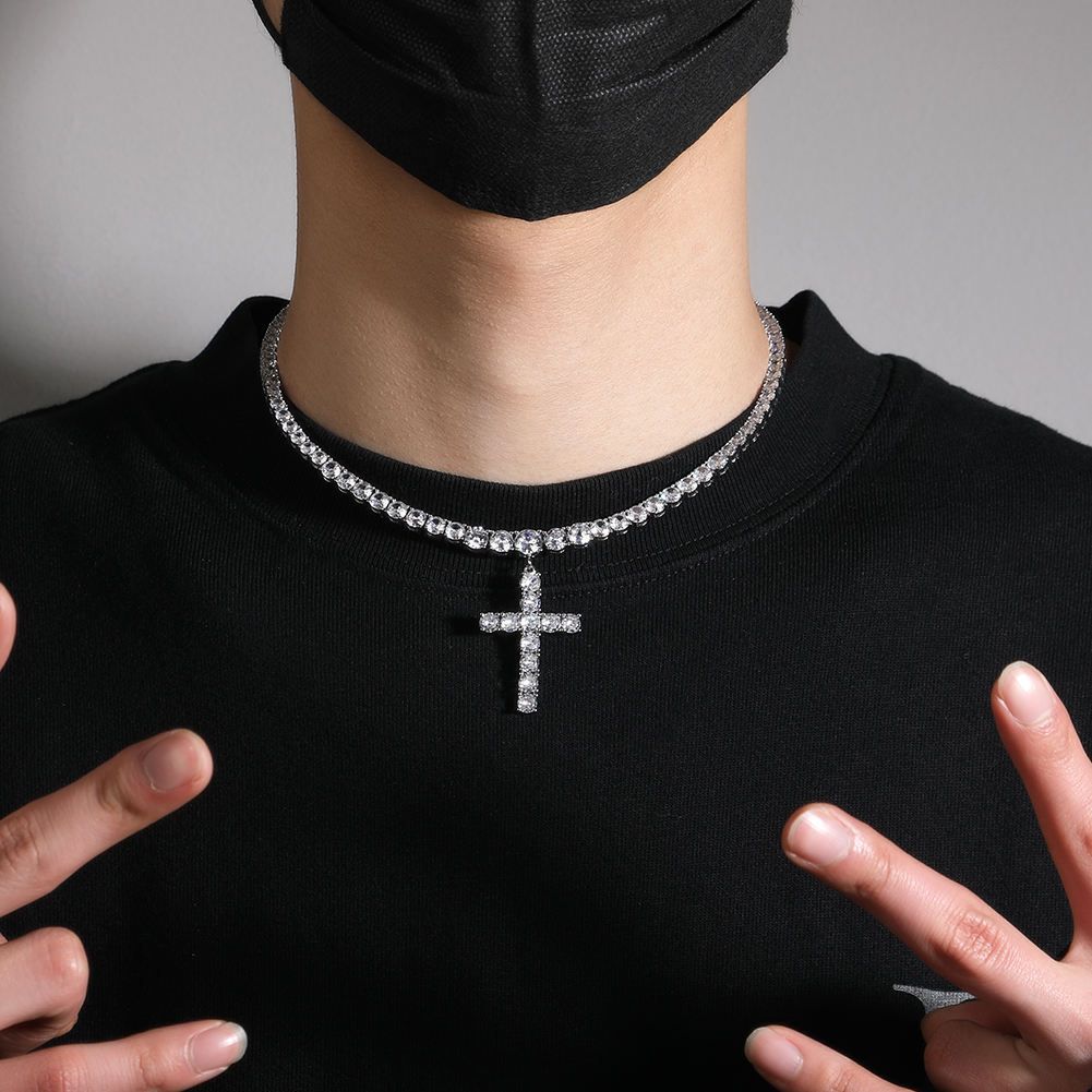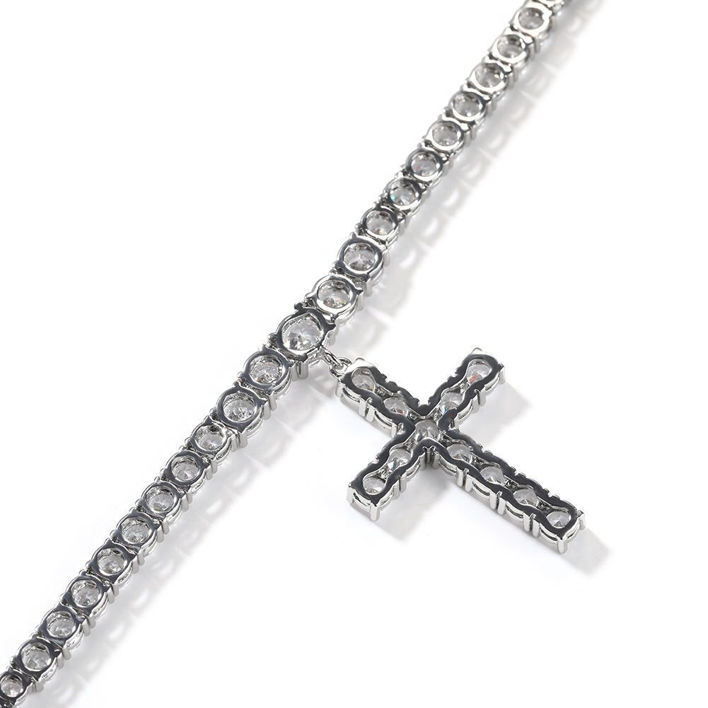 Sparkling Zircon Cross Pendant Necklace - Brass Tennis Chain Choker for WomenMen, 16Inch Luxury Crystal Jewelry Gift