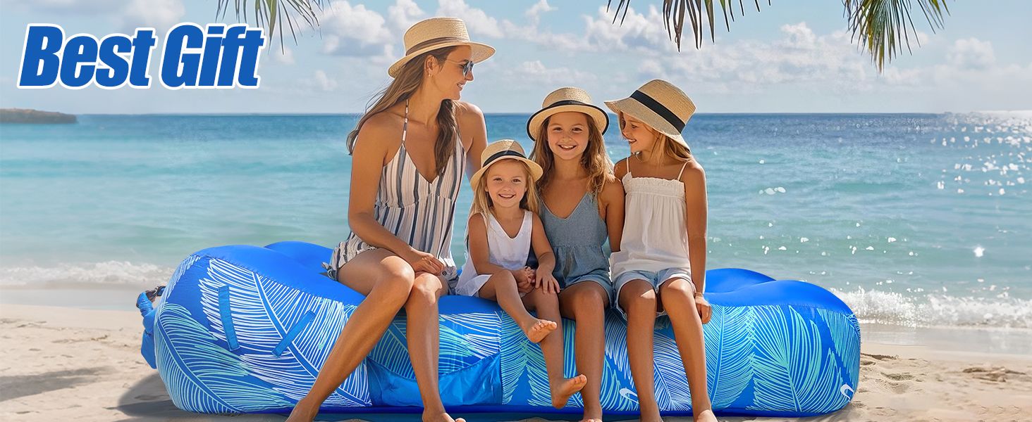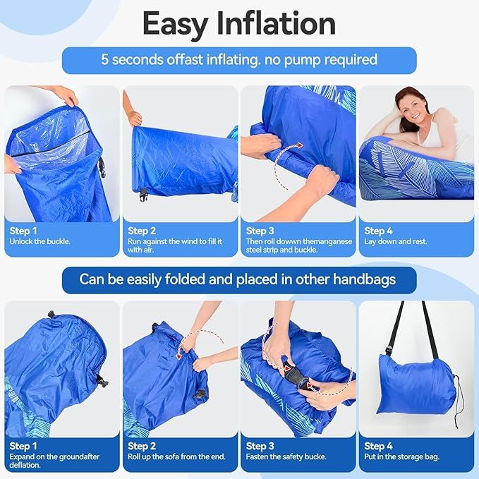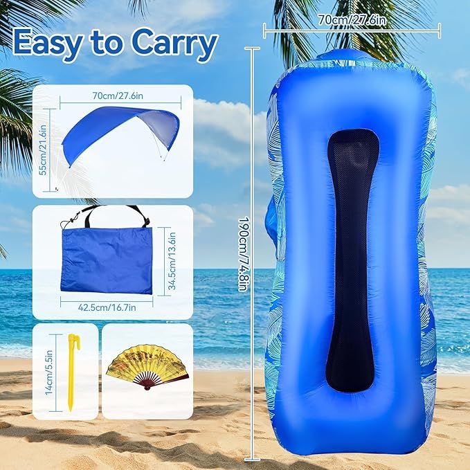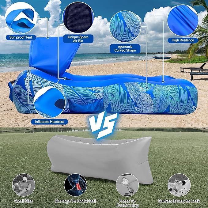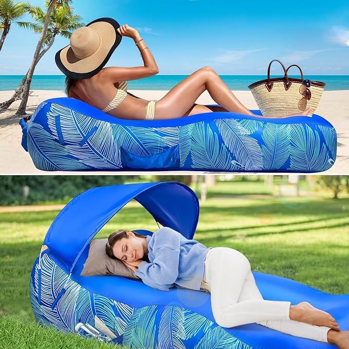 Inflatable Lounger Air Sofa with Sun Shade Cover Waterproof Inflatable Couch Chair for Camping Beach Hiking Backyard, Easy to Set Up Inflatable Couch (Blue)