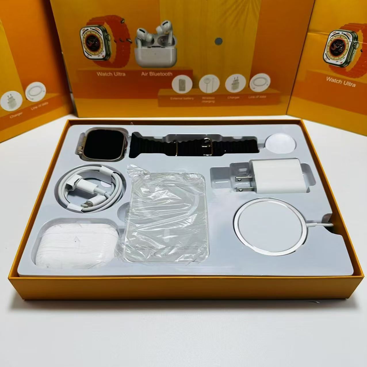 Value-for-money smart watch eight-piece set including Bluetooth earphones and magnetic charger